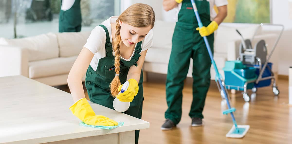 Thorough cleaning and sanitizing of the kitchen, including countertops, appliances, and sinks.